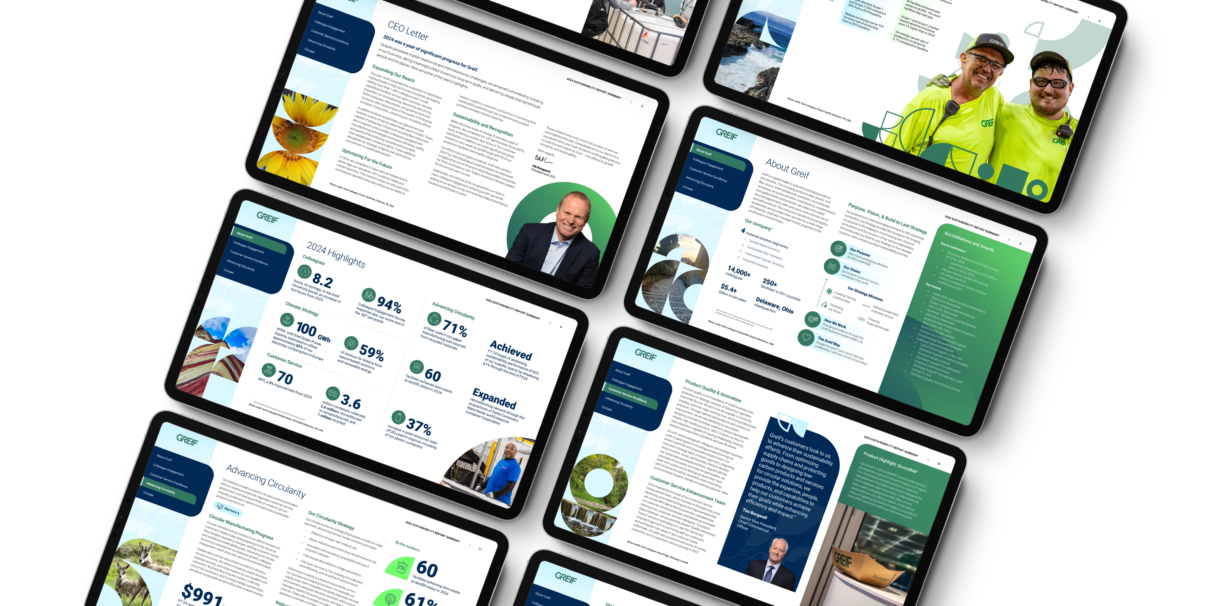 Infused Greif’s sustainability communications with a fresh, modern feel by integrating new branding and enhancing visual storytelling
